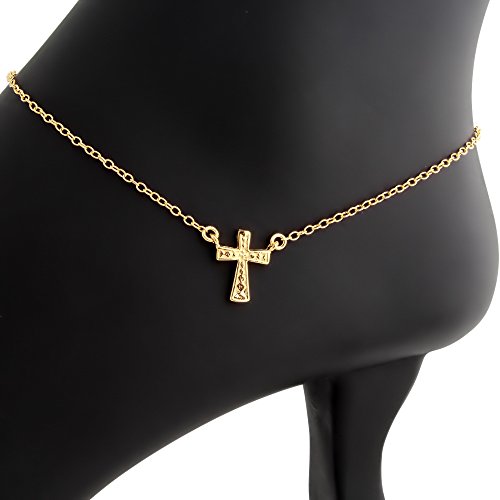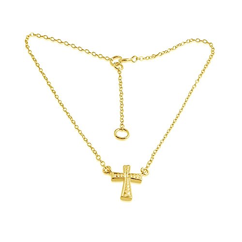 -. Title : Azaggi Gold Plated Sterling Silver Handcrafted Sideways Cross Anklet