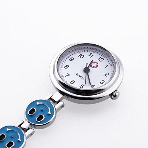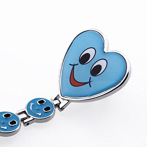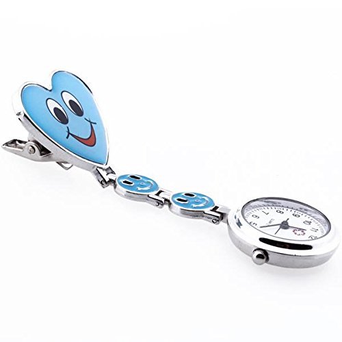 -. Title : Gleader Blue Heart Quartz Movement Clip Nurse Brooch Fob Tunic Watch Smiley Face