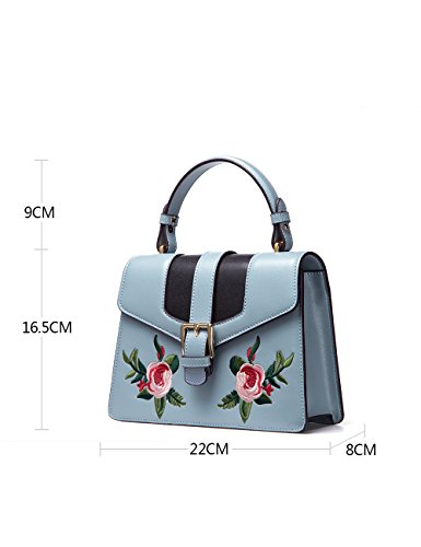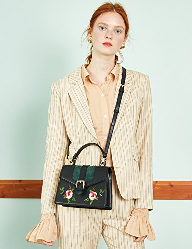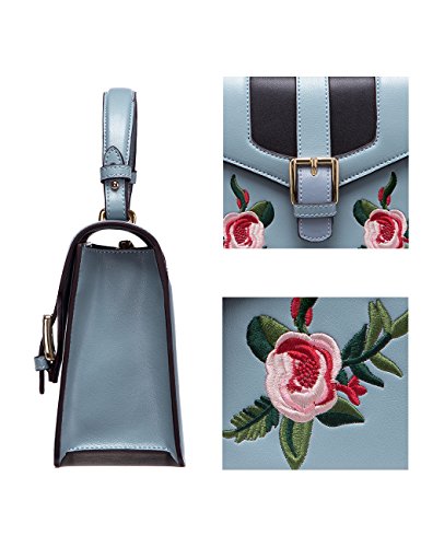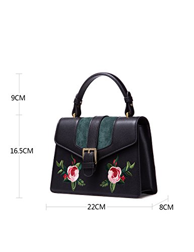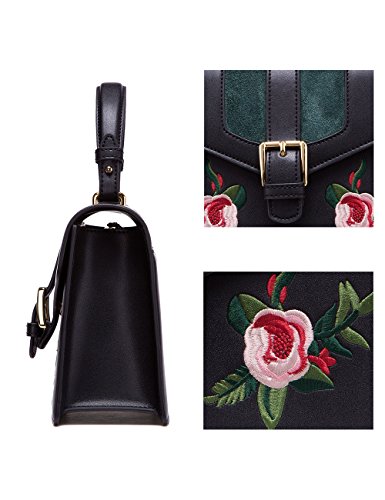 -. Feature : HIGH QUALITY: made of second layer genuine cowhide leather, good touching and comfortable / STYLISH DESIGN: messenger type kelly bag design, with flower embroidery and special buckle for added style, looks very exquisite and elegant / PRACTICAL: enough space with an inside slip pocket and a zipper pocket, equipped with an adjustable shoulder strap, can be used as a shoulder bag, crossbody bag or top handle handbag / DOUBLE SECURITY: zipper closure inside and magnet buckle closure outside, provide double security for your property / BAG DIMENSIONS: L8.66' x W3.15' x H10' , Shoulder strap can be adjusted from 19.68-22.8 inch