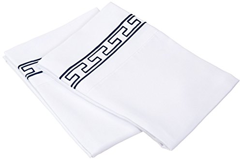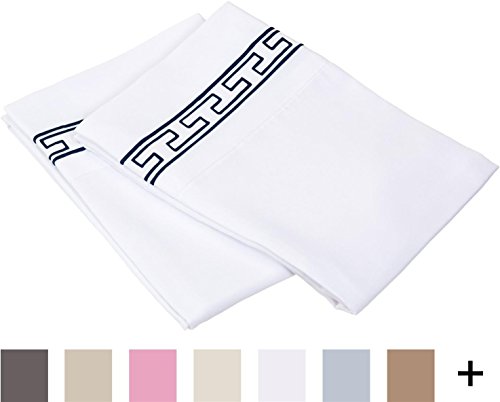 Super Soft Light Weight, 100% Brushed Microfiber 2-Piece King Pillowcases Set Wrinkle Resistant, White with Navy Blue Regal Embroidery