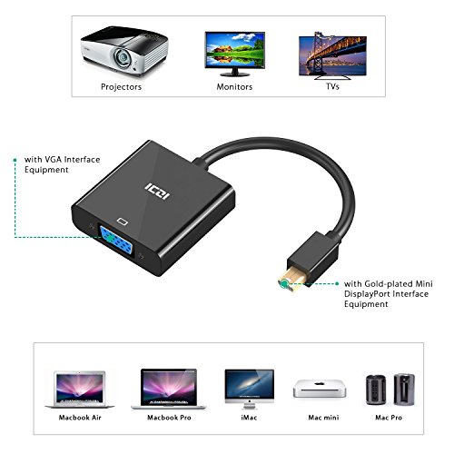Lightweight and portable adapter for connecting a Mini DisplayPort (Mini DP or mDP)/Thunderbolt™ 2 port compatible computer to an HDTV, monitor, or projector with VGA; A separate VGA cable (sold separately) is required.