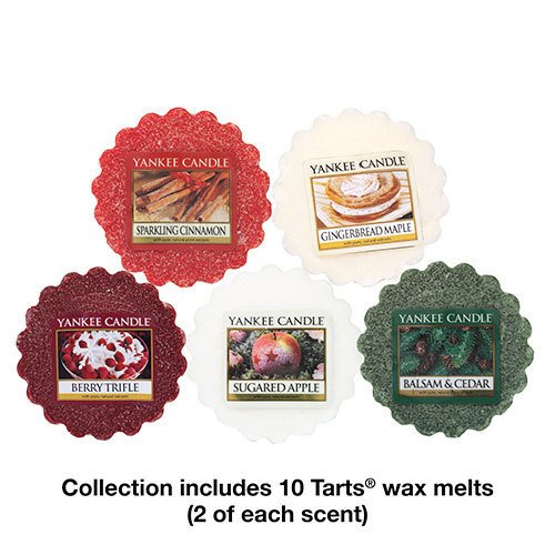 - About This Gift Set A great sampling of our most festive holiday scents. Collection contains 10 Tarts® Wax Melts; 2 of each: Balsam & Cedar, Berry Trifle, Gingerbread Maple, Sparkling Cinnamon and Sugared Apple.