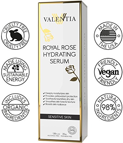 -. Title : NEW - Valentia Royal Rose Hydrating Serum - For Sensitive Skin - Includes Rose Damascena, Organic Rosehip Oil, Niacinamide (Vit B), Evening P.R.Imrose, Bearberry, and Lavender - 1.18 Oz
