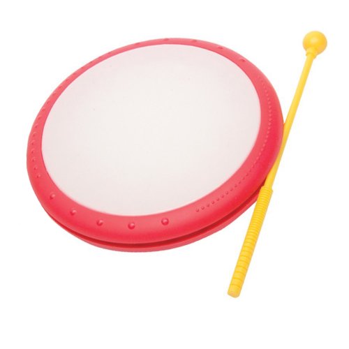 -. Feature : Kids Hand Drum with Mallet / Easy to grip and play plastic hand drum / Innovative mallet holder stores along rim of drum / Play on the drum or create special effects along edge of the drum
