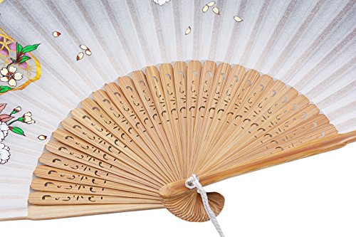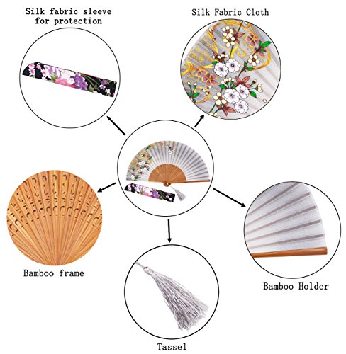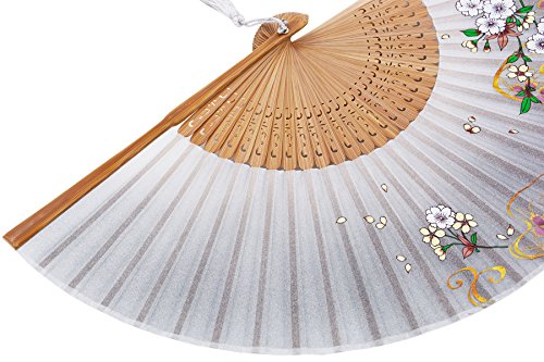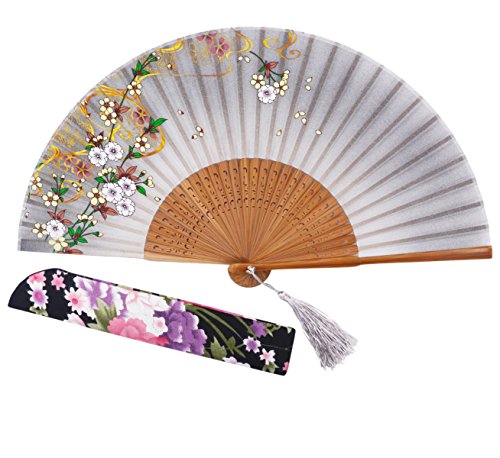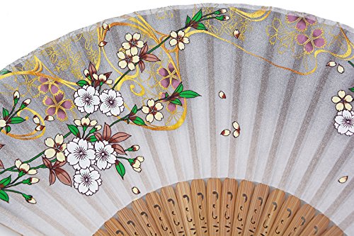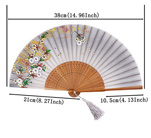 STHUAHE 8.27"(21CM) "Flower" Series Hand Painting Women Folding Fans With a Fabric Sleeve for Protection,Chinese/Japanese Vintage Style Hollow Carved Bamboo Frame For Gift Wedding Dance (Silver)