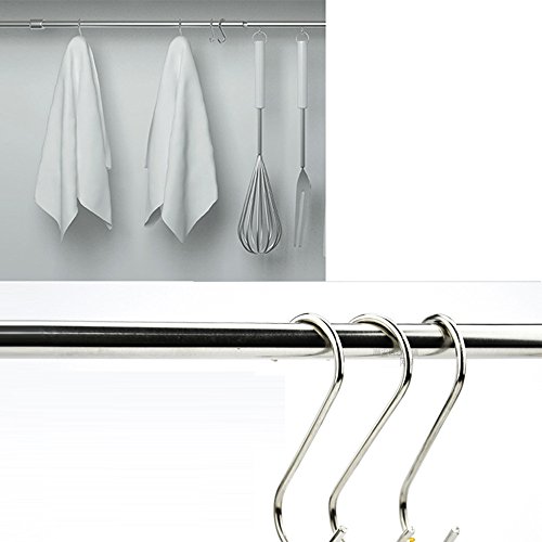 ?With stainless steel S- hook, hook heavy for these small in many places ortraction fromcan easily organize them huddled kitchen appliances or workshop tools. ?Without nails, screws or adhesives. Stainless steel, these hooks are strong hook, is safe, so you can hang heavier items without having to worry about their whereabouts or damaged. ?Sleek stainless steel design, S hooks environment and improve your appearance, make your environment more aesthetic. Do not worry about spending a lot of money in order to achieve your desire, because these sturdy hooks price is reasonable.