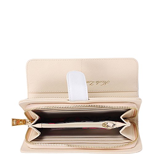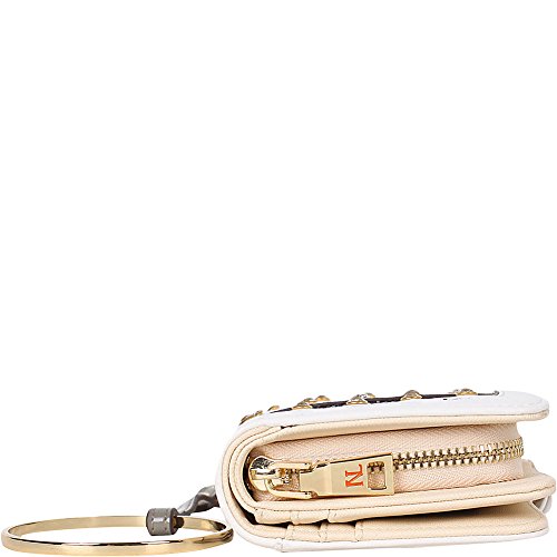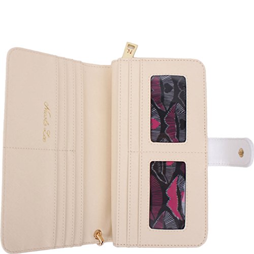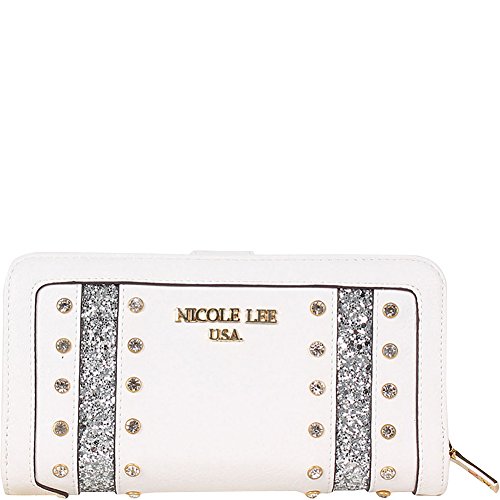 -. Feature : Multi-functional wallet that doubles as a wristlet / Exterior Features: A sparking exterior with glitter and rhinestone detailing. Made of pebbled vegan-leather, gold-tone hardware, zipper closure with NL monogrammed zipper pull, snap button closure, detachable gold tone faux leather wristlet and Nicole Lee letting at front. / Interior Features: Flap closure features two ID windows, six credit card sleeves, and two receipts sleeves. Zipper compartment includes six receipt sleeves, middle coin zipper pocket with NL Lip P.R.Int nylon lining. / Vegan leather gold tone hardware wrislet with 4" inch drop.. / Zipper and snap button closure