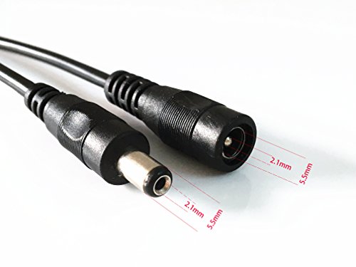 2.1mm X 5.5mm DC plug extension cable allows flexible option for setting up electronic device such as CCTV camera, printers, LED lamps and signage, sensors, anything that requires DC input and accept 2.1mm x 5.5mm plug, where wall outlet may be out of reach. Comes with female jack at one and a male plug on the other to extend the reach of DC power supply. This unit only accepts 2.1mm x 5.5mm barrel plug from power adapter and will not work with other sizes.