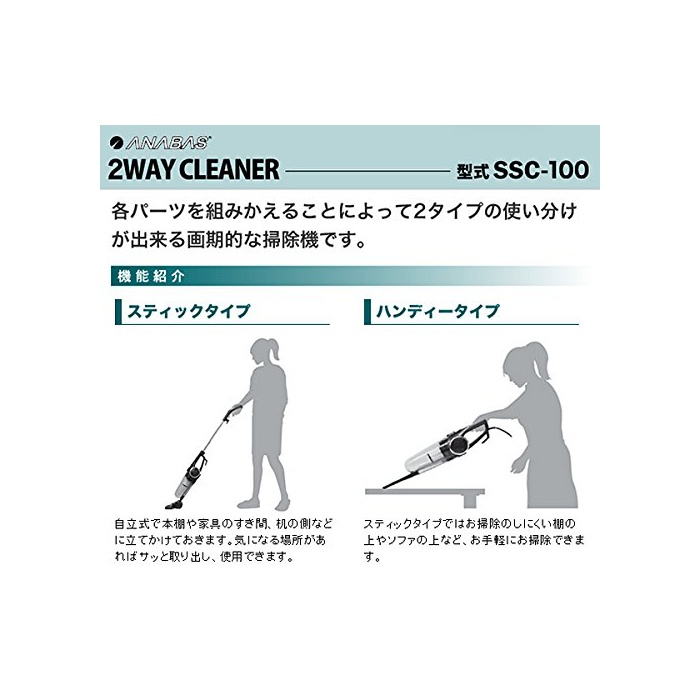 원본상품명: 太知ホルディングス(ANABAS) 2WAY サイクロンクリナ スティック&ハンディクリナ 掃除機 SSC-100
