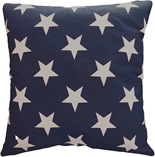 Leaveland Printed White Navy Star 18x18 Inch Cotton Linen Square Throw Pillow Case Decorative Durable Cushion Slipcover Home Decor Sofa Standard Size Accent Pillowcase Encasement