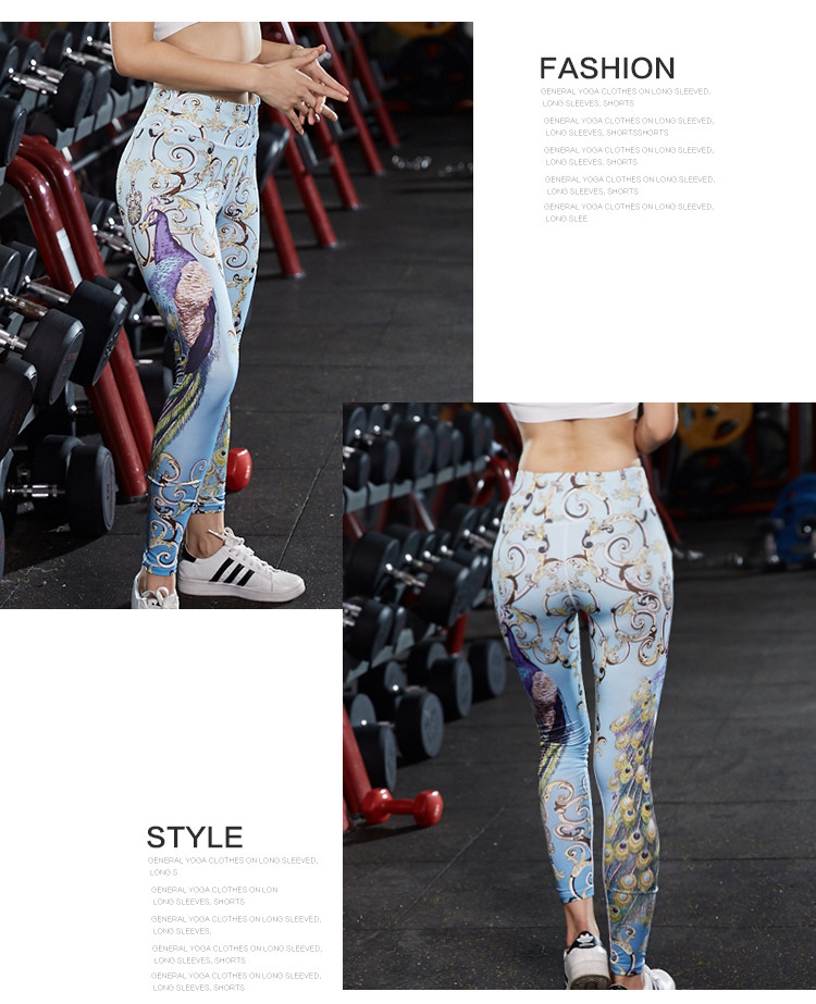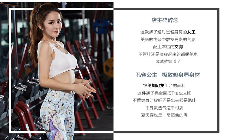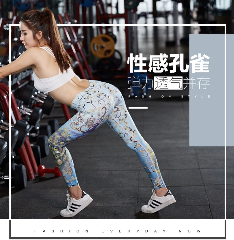 夏季新款紧身速干运动裤女时尚孔雀裤显瘦跑步裤瑜伽健身裤