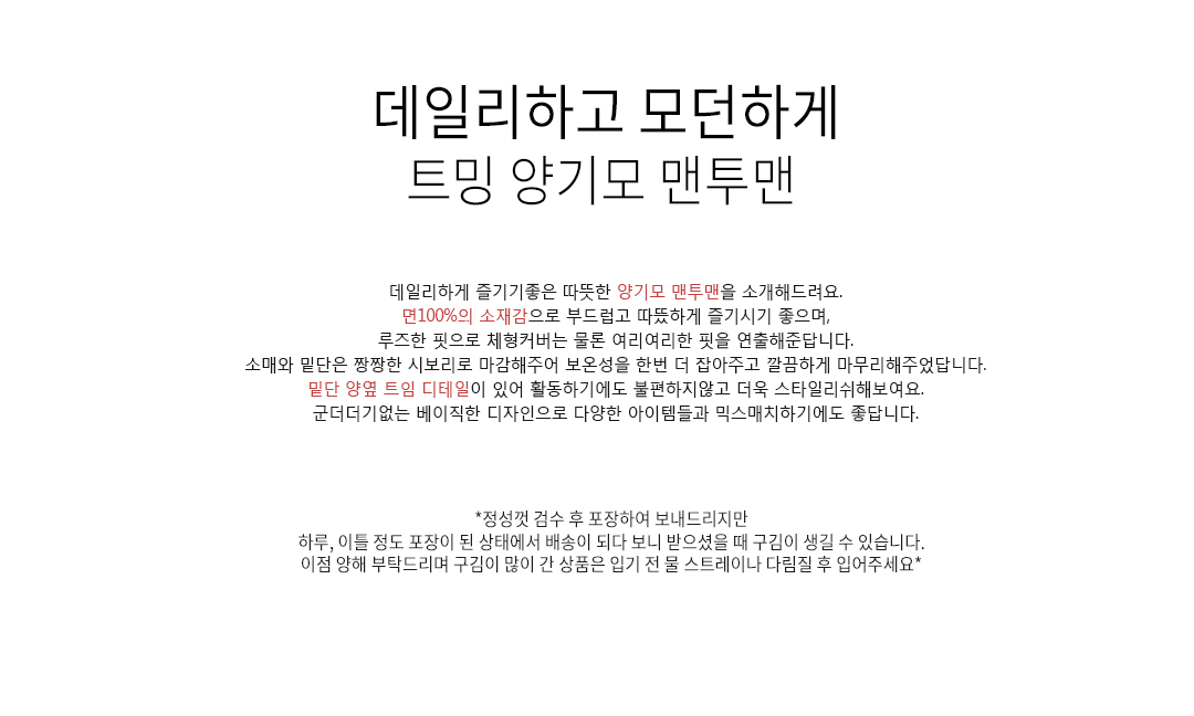 .같은 사이즈라도 체형에 따라 핏감이 조금씩 다를 수 있습니다.