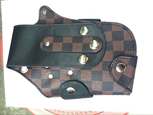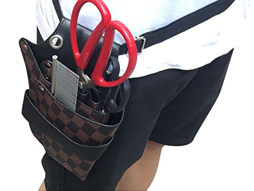 Professional Hair Dressers Scissors Holder Holster Barber Salon Shears Leather Pouch Tools Bag with Waist Shoulder Belt JDB03 (Checked)