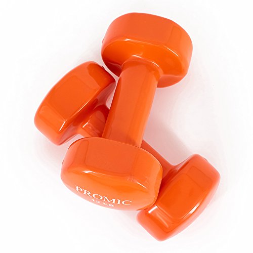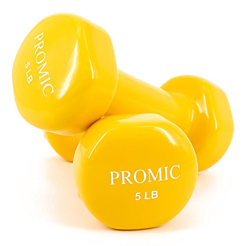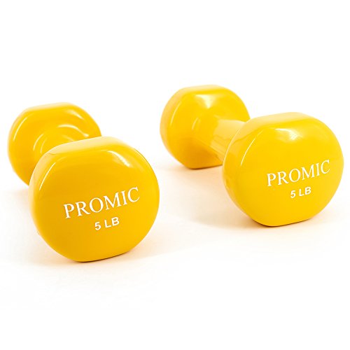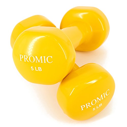 PROMIC Hand Weights Deluxe Solid Vinyl Dumbbells Weights 5 Pound with Non-Slip Grip for Fitness Exercise,Set of 2