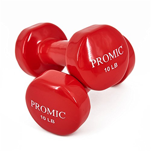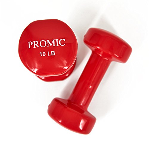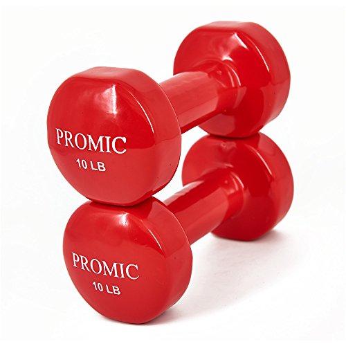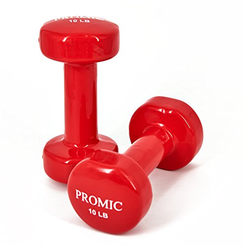 PROMIC Hand Weights Deluxe Solid Vinyl Dumbbells 10 lbs with Non-Slip Grip for Fitness Exercise,Set of 2