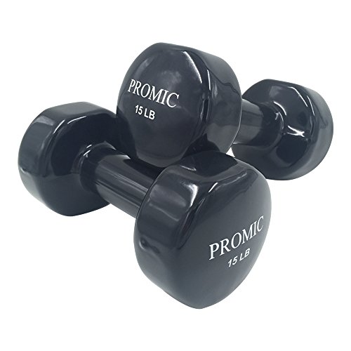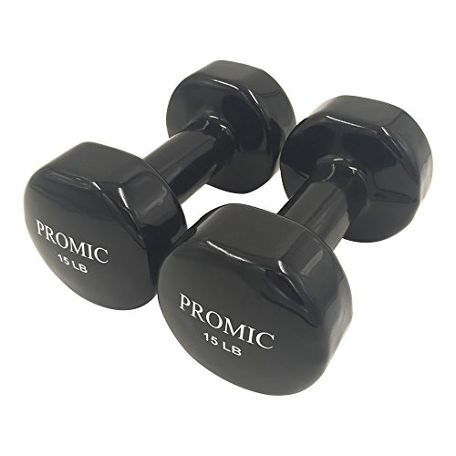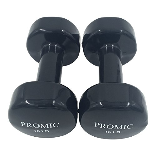 PROMIC Hand Weights Deluxe Solid Vinyl Dumbbells 15lbs Pair with Non-Slip Grip for Fitness Exercise,Set of 2
