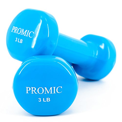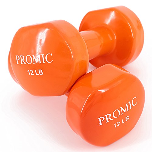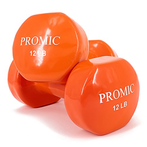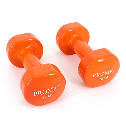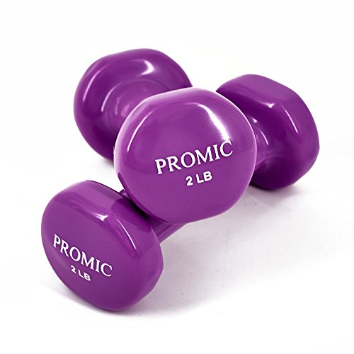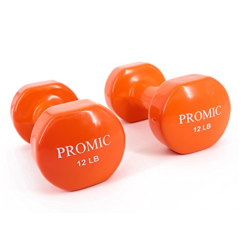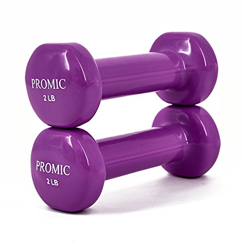 PROMIC 1lb to 20lb Hand Weights Deluxe Solid Vinyl Dumbbells with Non-Slip Grip for Fitness Exercise Weights,Set of 2