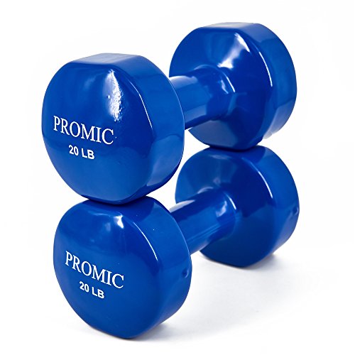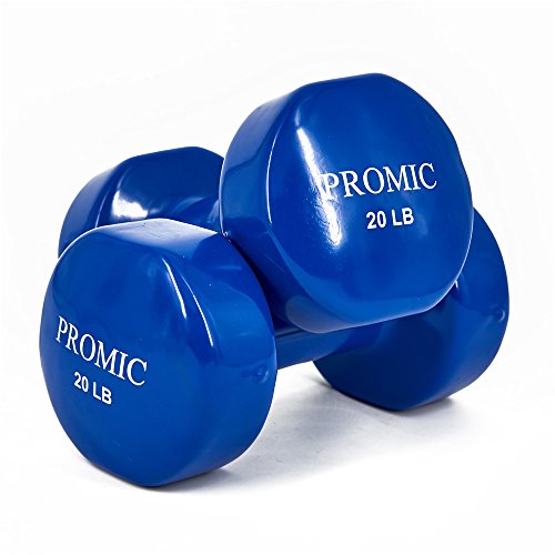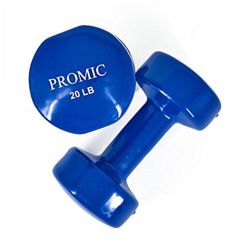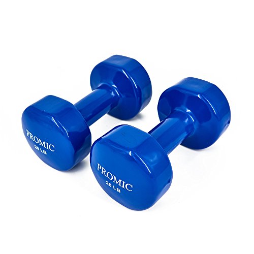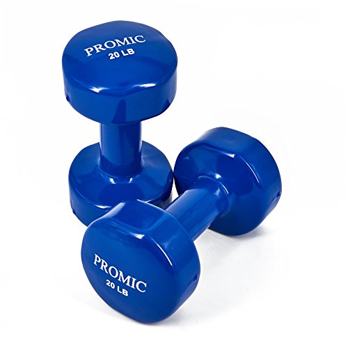 PROMIC Hand Weights Deluxe Solid Vinyl Dumbbells 20 Pounds Set with Non-Slip Grip for Fitness Exercise,Set of 2