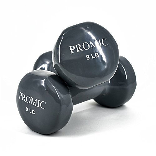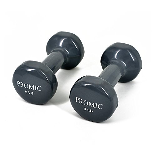 PROMIC 9-Pound Hand Weights Deluxe Solid Vinyl Dumbbells with Non-Slip Grip for Fitness Exercise,Set of 2