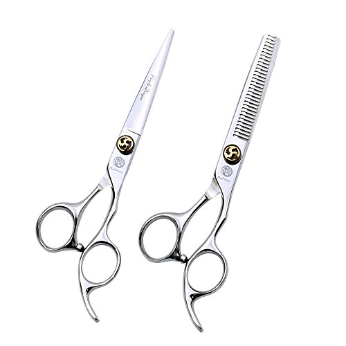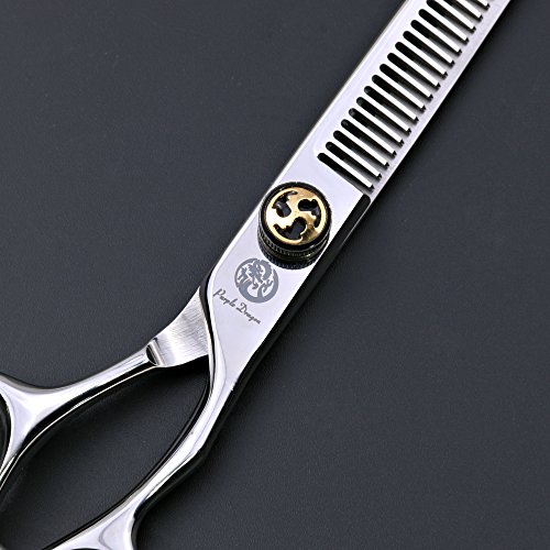 Purple Dragon 6.0 inch Silver Barber 440C Hair Cutting Scissors and Thinning Shears with Bag for Professional Hairdresser or Family DIY
