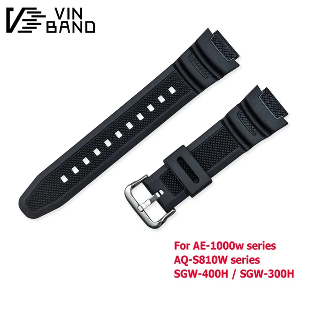 | [해외]고무 스트랩 카시오 AE-1000w AQ-S810W SGW-400H/SGW-300H 실리콘 손목 핀 버클 스트랩 시계 손목 팔찌 블랙 + 도구 |