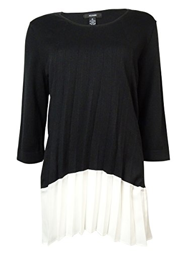 Alfani Women's Pleated Contrast Crepe-Hem Sweater