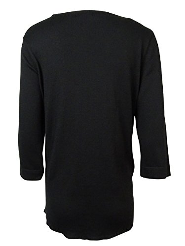 Product DescriptionSweater features no lining, scoop neck, 3/4 sleeves, knit cotton blend fabric, pleated crepe hem, and pullover style.0