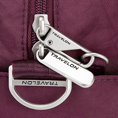 -. Brand : Travelon -. Department : unisex-adult -. Feature : Large main compartment with padded iPadtablet sleeve, drop in pocket and zippered wall pocket for small items / Front pod pockets for cellphone, sunglasses or quick grab items. RFID blocking card slots, drop in pocket, pen slots in one pocket. Other pocket is fleece lined to protect phone screen or sunglasses / Back zipper with add a bag strap built in / Drop pockets on either side for quick access or water bottle / Detachable crossbody strap -. Label : Travelon -. Manufacturer : Travelon -. PackageQuantity : 1 -. ProductGroup : Apparel -. ProductTypeName : LAGE -. Publisher : Travelon -. Size : One Size -. Studio : Travelon -. Title : Travelon Anti-Theft East/West Weekender Tote - Exclusive