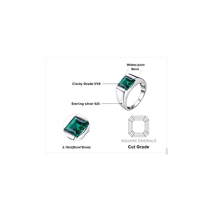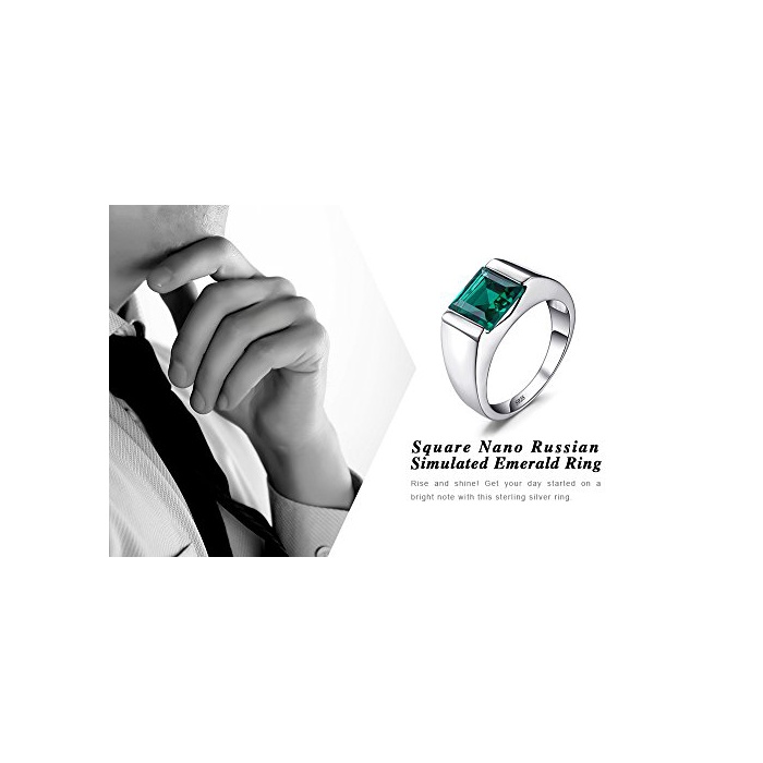 Jewelrypalace JewelryPalace 2.34ct 스퀘어 인공 나노 탄생석 5월 에메랄드 링 맨즈 스타링 실버 925 약혼 반지 남성