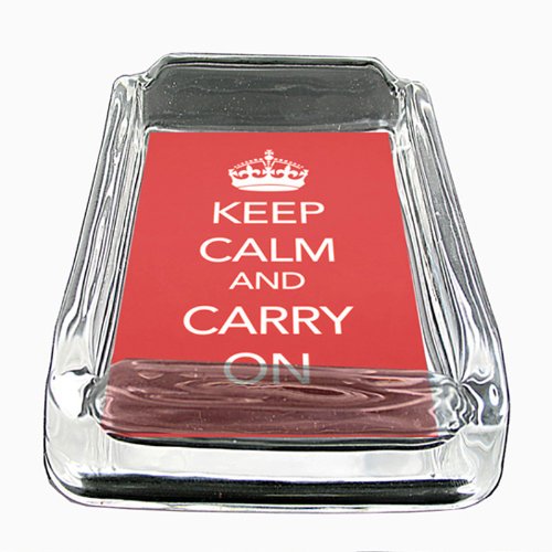 -. Title : Glass Square Ashtray Keep Calm and Carry On Design-014