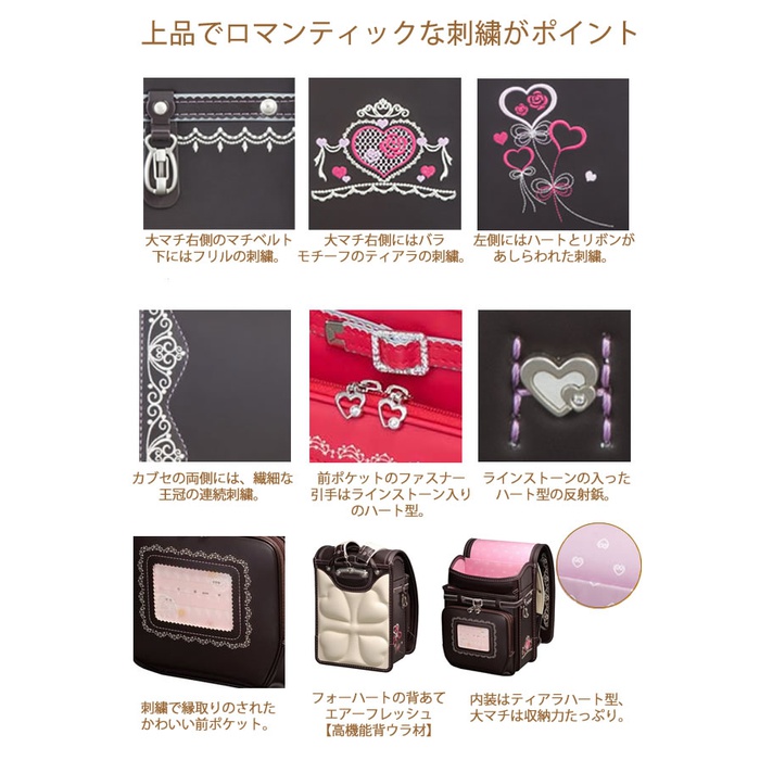■란도세루(초등학생이 어깨에 매는 가방)는,신입학의 당시의 필수품의 가방입니다.학습 데스크와 동시기에 구입의 경우나,할아버지,할머니에게서의 선물,생일 선물로서,1년중 판매 하고 있습니다. 피트상,천사의 날개의 차이는,금구의 차이에 기능으로서는,거의 같습니다.메이커( 천사의 날개 서는 세이반, 피트상은 《라폰테》의 금구에,양사가 제조 판매하는 모델 ( 세이반으로,모델 로얄,원 파,러브《피》 고, 《라폰테》로, FIT-213 사랑사랑 티아라, FIT-208 로얄 로즈, FIT-211 핸섬 보이 고, FIT-211 굿 보이, FIT-202 터프 보이 등)와,양사에 제조를 위탁한 상사,도매상 오리지날이나 제조 공장이 금구를 매입 제조한 오리지날 모델이 있습니다.따라서 어느 쪽의 금구를 사용 하고 있는지 로 인해 분류됩니다.재질은,가죽,칼파 밴,클라리노(합가죽(껍질))가 있습니다.