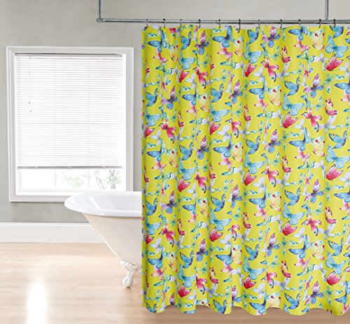 Regal Home Collections Butterfly Printed Fabric Shower Curtain, 70 by 72-Inch, Citron Green/Multicolor