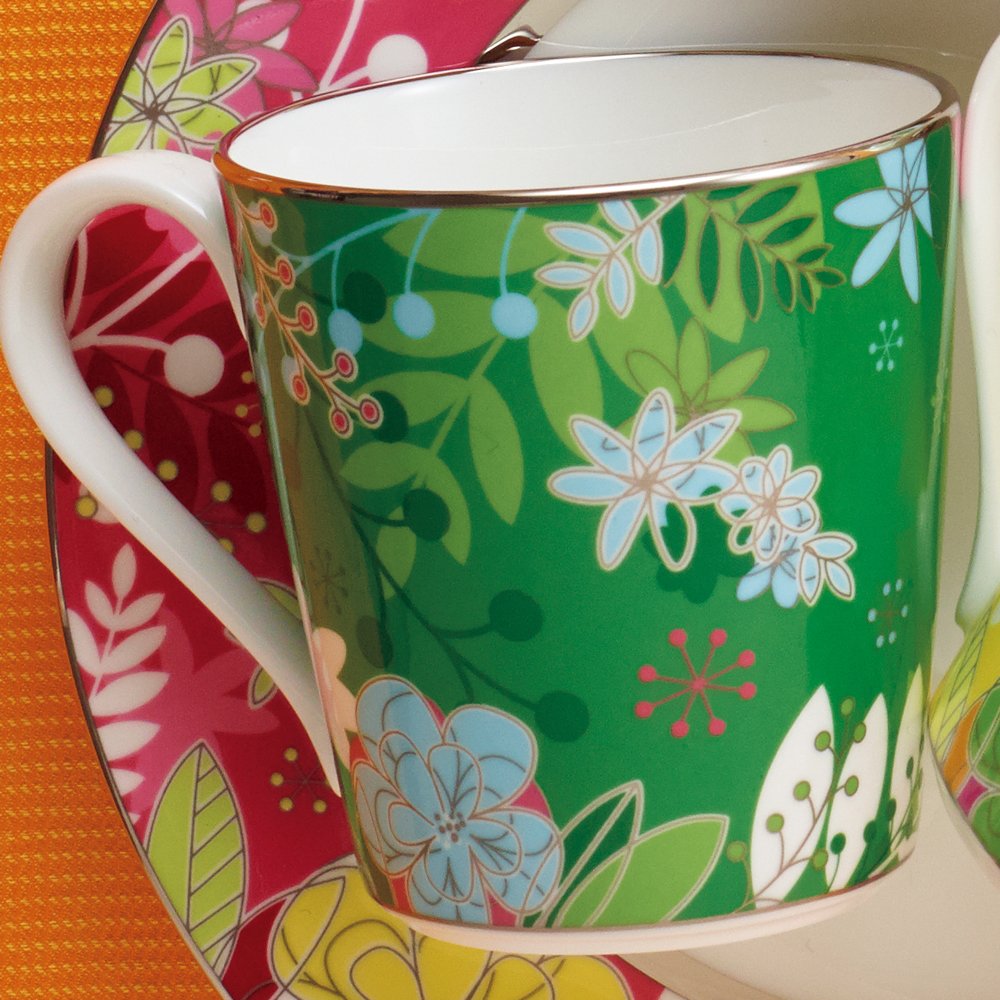 Mind that feels a refreshing breezy stylish mug that boldly designed colorful colors and flowers based on green calming green.