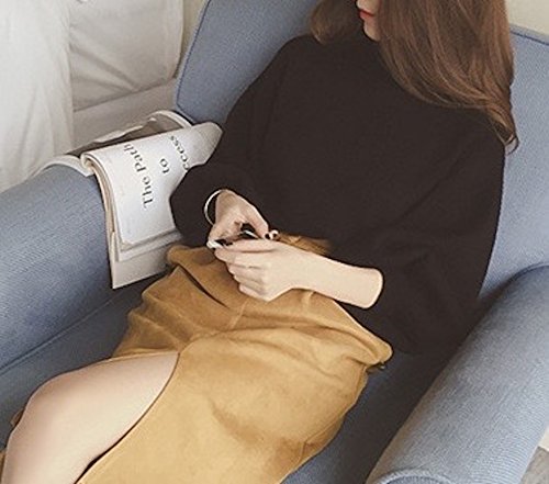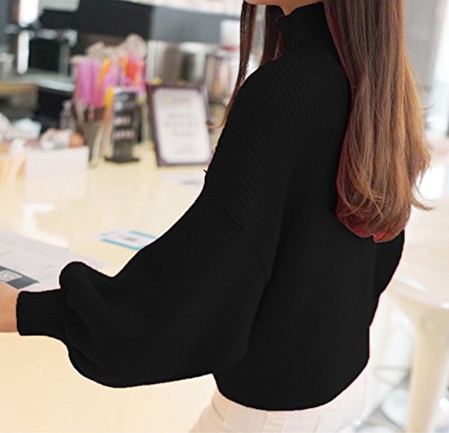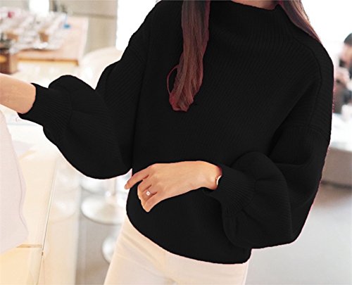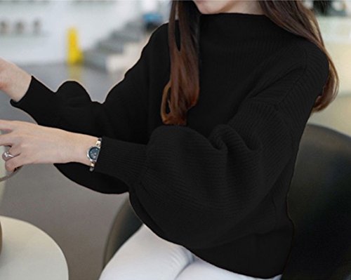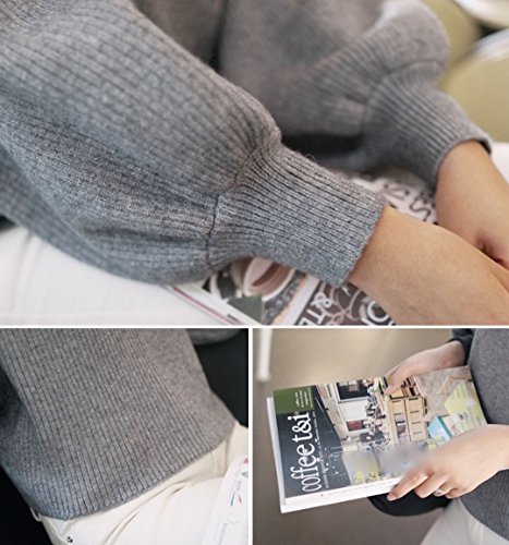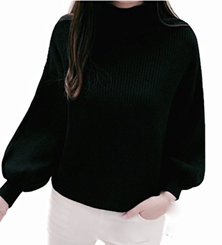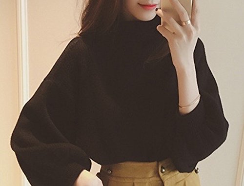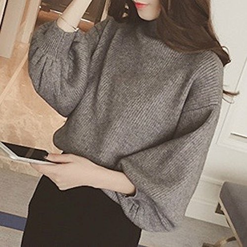 -. Title : (119ホンポ)119本舗 レディース リブ ニット ハイネック セーター バルーン スリーブ 長袖 (黒 白 灰 )3色展開 フリーサイズ Free #105