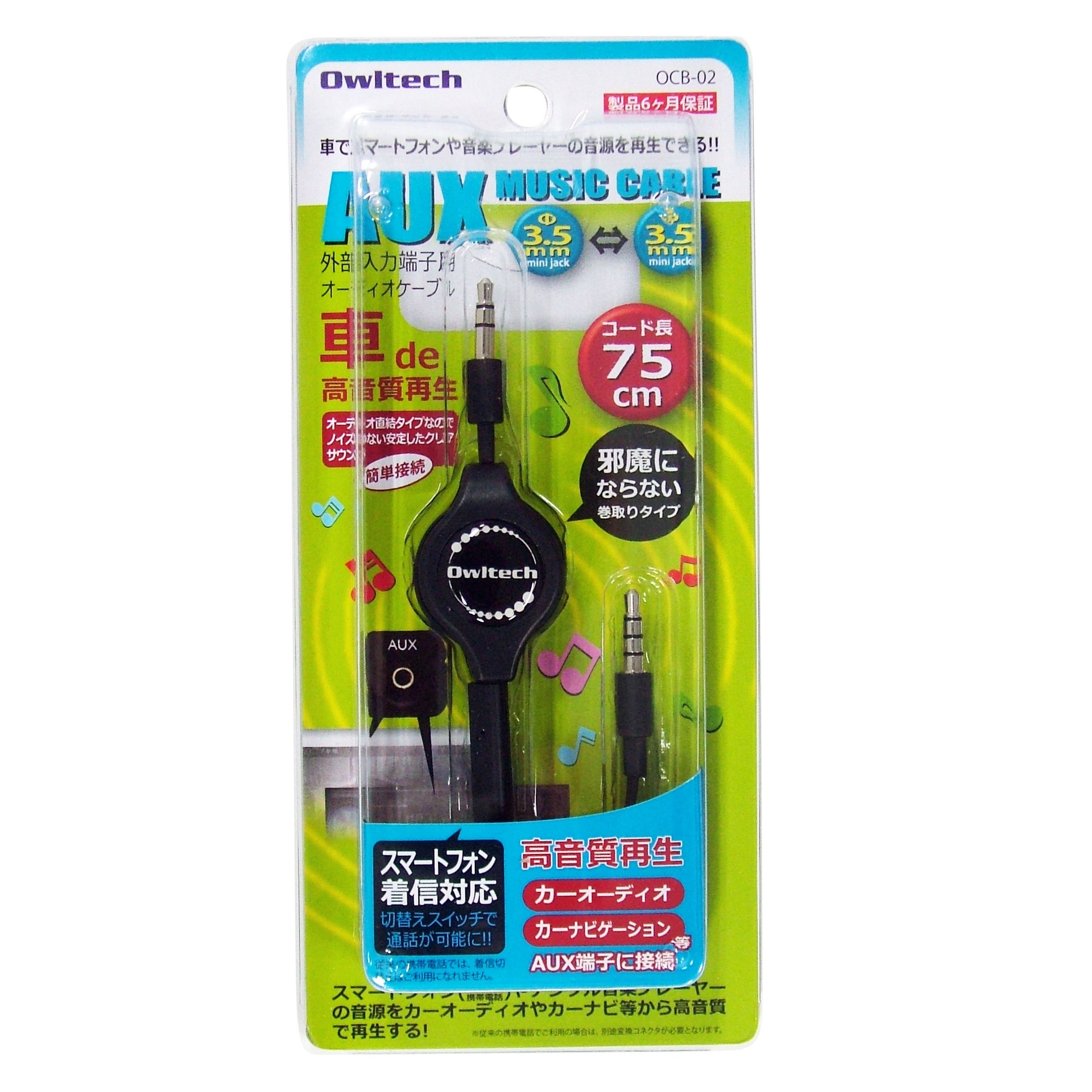 Ourutekku iPhone6 / 6Plus like / various smartphone-compatible car navigation system AUX terminal with a connection for switching type switch audio cable take-up type 75cm black OCB-02