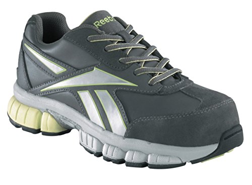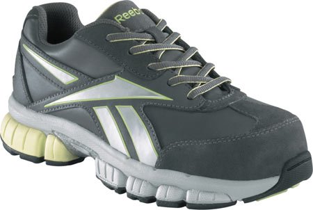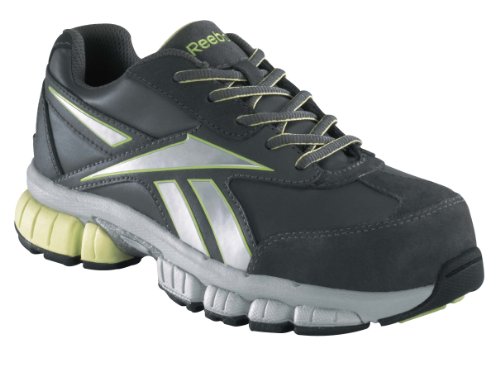 Studio : Reebok Publisher : Reebok Binding : Apparel Product Description Suede and Mesh Nylon Mesh Lining Removable EVA Cushion Insert with Sponge Rubber Heel Wedge EVA Cushion Midsole with Wrap around Shank Stabilizer 100% Non-Metallic Tri- Density Rubber Outsole Composite Toe Rated F2413-05 Electrical Hazard Extra Wide Toe Outsole Ratings: Slip - Better Oil - Better Metal Chips - Good Heat - Good Abrasion - Better Chemicals - Better RB446 Reebok Women's Cross Trainer Safety Shoes - Dark Grey/Silver/Blue 0