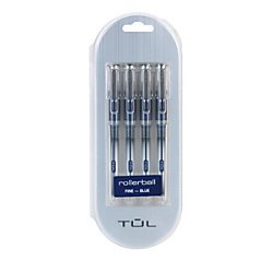 TUL® RB1 Rollerball Pens, Fine 0.5mm, Silver Barrel/Blue Ink, Pack Of 4