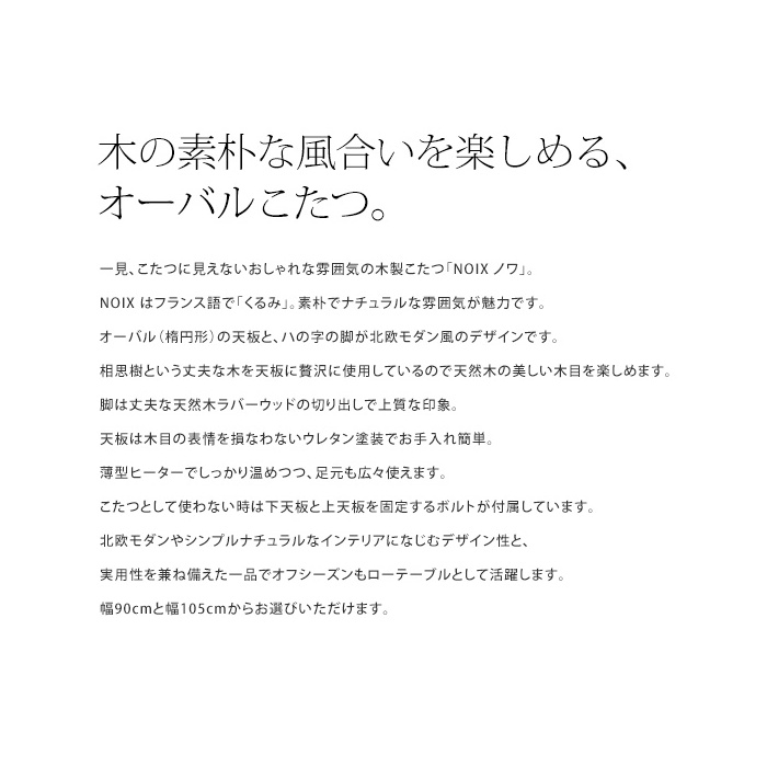 원본상품명: 木製オ?バルこたつテ?ブル「NOIXノワ」幅105cm 楕円形 3~4人 コタツ 省スペ?ス コンパクト ナチュラル シンプル 北?送料無料