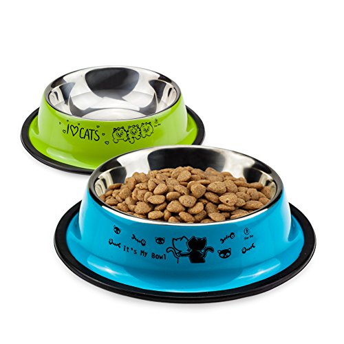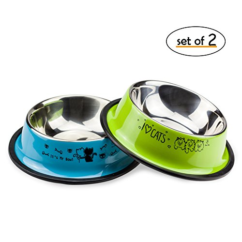 (Uligota)/Pet Supplies/Houses Habitats/DIRECT FROM USA/Uligota 2 Pack Stainless Steel Cat Bowl,Small Heavy Duty Dog Cat Dish with Non-Skid Rubber Bo...