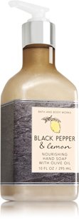 -. Binding : Misc. -. Brand : ghdfvb -. EAN : 0667544892548 -. Feature : Nourishing hand soap / Made with olive oil / Lemongrass, rosemary, and a touch of pepper / 10 fl oz -. Label : Bath & Body Works -. Manufacturer : Bath & Body Works -. PackageQuantity : 1 -. ProductGroup : Beauty -. ProductTypeName : BEAUTY -. Publisher : Bath & Body Works -. Size : 10 fl oz -. Studio : Bath & Body Works -. Title : Bath and Body Works Black Pepper and Lemon Nourishing Hand Soap with Olive Oil 10 ounces -. UPC : 667544892548