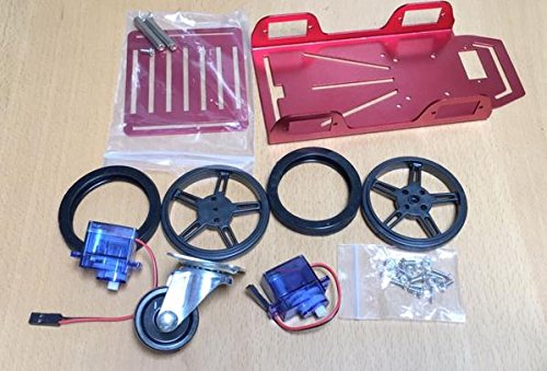 Red Rover is a simple 2WD robot chassis that gets your projects moving quickly! Unlike other robots that need expensive motor control boards, Red Rover comes with a really simple motor controller board. If you can make servos move, you can make Red Rover move! Red Rover includes a motor driver board that makes the wheel drive motors appear as two continuous rotation servos. So you'll be able to use your micro-controller's standard servo library to drive Red Rover. Set the motor to 180° and it'll drive at 100% forward. Set it to 0°, and the motor will run backwards at full speed. Set it to 90° and it stops. Arduino, power pack and pen kit shown in some pictures are not included. This is a kit that requires assemblyFeature