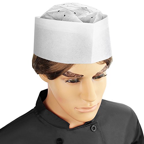 New Star Foodservice 32192 Disposable Non Woven Flat Chef Hat, 3.5-Inch, White, Set of 100