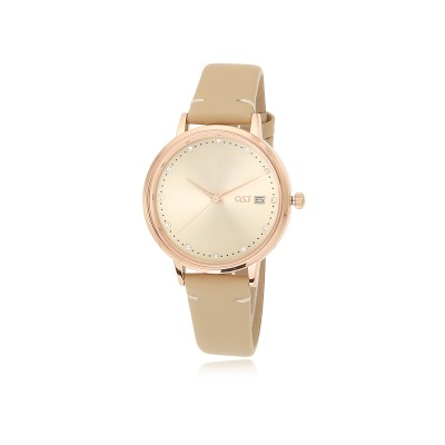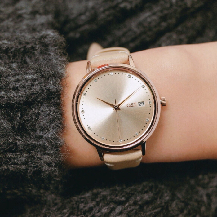 OST / [남녀공용] 큐빅 심플아이보리 가죽시계