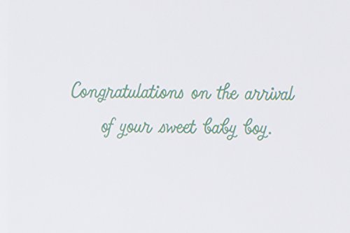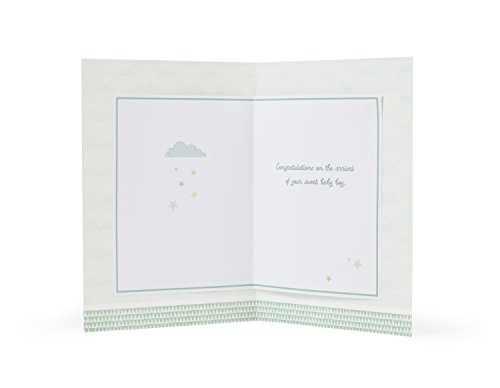 Studio : Hallmark Marketing Company, LLC (Office) Publisher : Hallmark Marketing Company, LLC (Office) Binding : Office Product Product Description Congratulate new parents with this card designed with a baby boy asleep in his bassinet on a seafoam-toned background accented with clouds and stars. The message on the front of the card reads, "Little fingers curled around, chubby cheeks and eyes of brown, heaven's blessing sent right down to bless your life with love." Open the card to reveal the inside message, "Congratulations on the arrival of your sweet baby boy." The card measures 7.2 inches long by 5 inches wide made with high quality cardstock paper; an envelope is included. All Hallmark cards are made with paper from well-managed forests. Mahogany greetings help African Americans enhance emotional connections with family and friends, and are an authentic representation of what is most beloved and valued within African American culture. Hallmark was founded in 1910 when 18-year-old J.C. Hall arrived in Kansas City, Missouri, with a couple of shoeboxes of postcards under his arm and the American dream in his heart. Today, more than a century later, Hallmark greeting cards are sold online and in nearly 40,000 retail stores across the globe and people continue to recognize the iconic Hallmark brand as "the very best." 0