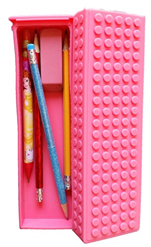 Silicone Pencil Case with 50 Removable Squares-Use to Customize, Personalize, Design Your Case! (Pink)