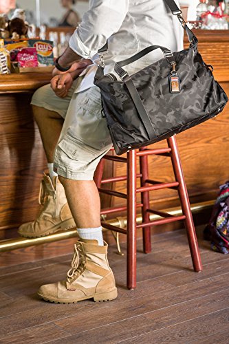 Launched as part of BURGAN's Combat Fashion Lifestyle Collection, the Unisex BURG 105 Duffle/Holdall is contemporary styled with its subtle camouflage pattern. This smart style is sturdy and durable too, and is trimmed with smooth leather and silver hardware. The two-way zip opens to reveal a large main compartment with zip-fastening pockets and slip pockets to keep your passport, phone, and valuables secure and padded notebook pocket design to fit up to a 15" laptop. The BURG 105 Duffel/Holdall features a detachable woven-web strap and is featured in two stylish colors; Black with Black leather straps and Navy with Dark Brown straps. Useful for every intention this duffel bag can be a perfect solution daily use, travel or gym. 0 |