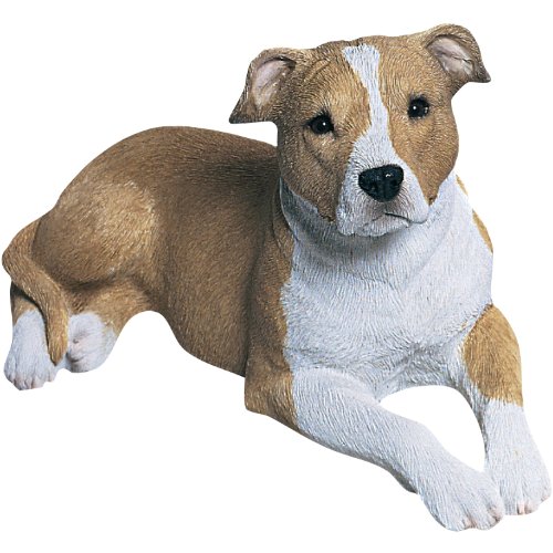 Sandicast Mid Size Fawn and White Pit Bull Terrier Sculpture, Lying