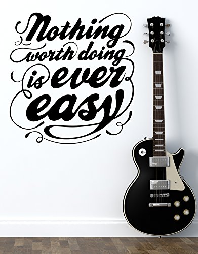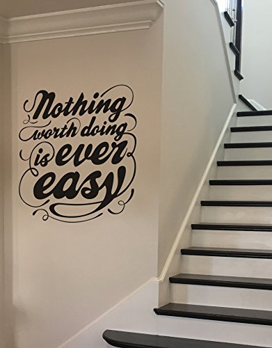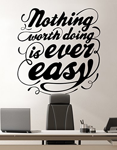 Nothing Worth Doing is Ever Easy Motivational Quote Wall Decal Sticker #6103s 21in Tall X 20in Wide (BLACK)