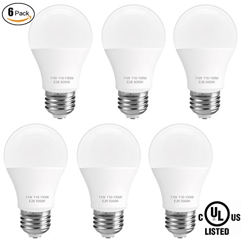 ( 6-Pack) SUNMEG A19 LED Light Bulb, 100 Watt Equivalent (11W), E26 LED Bulbs, 1050 Lumens, Daylight (5000K), 120VAC, UL Listed