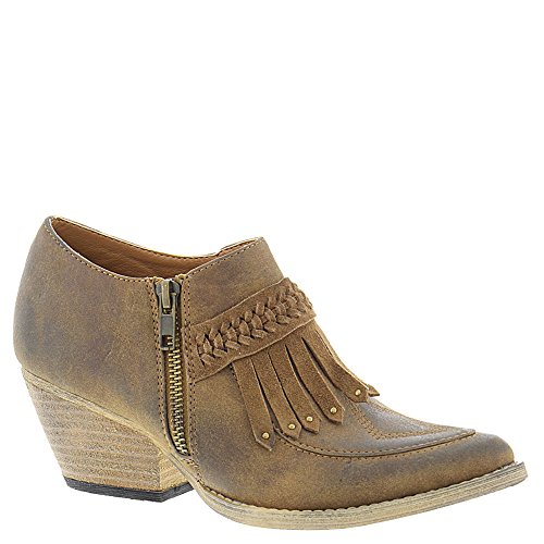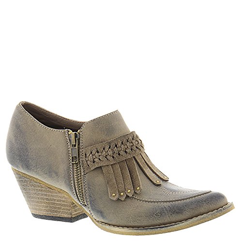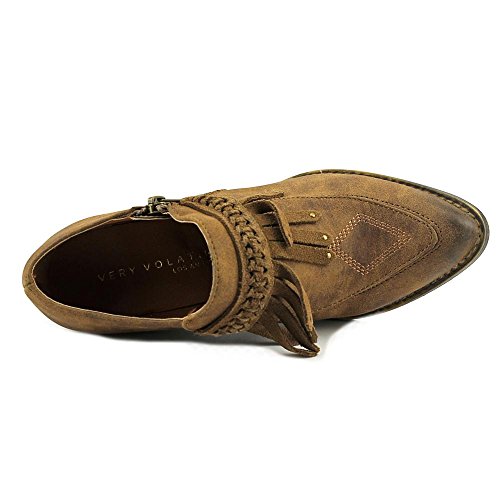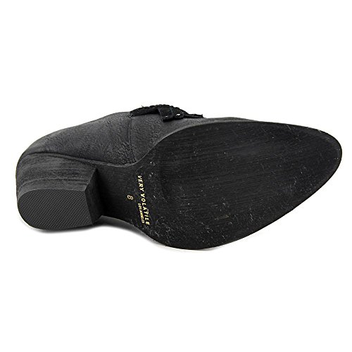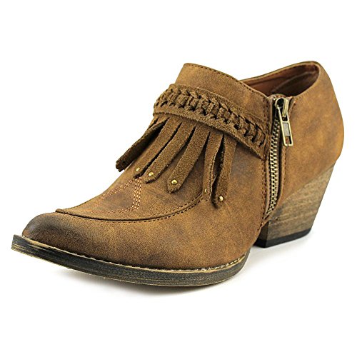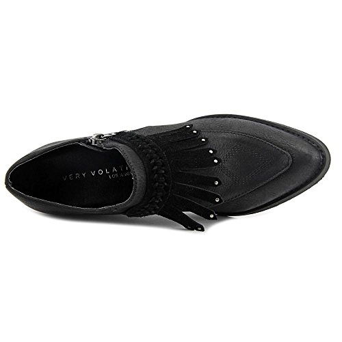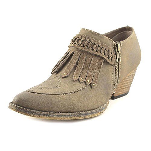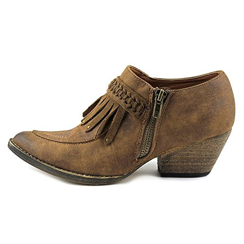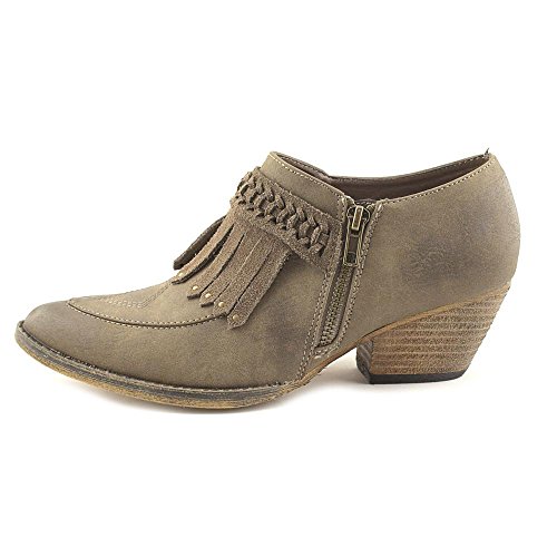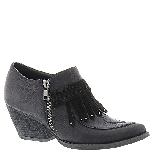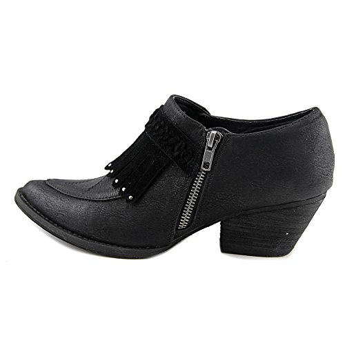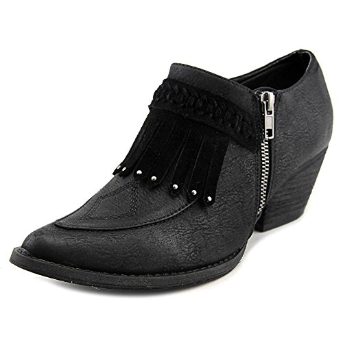 Binding : Apparel Product Description *Step into fashion's fast lane with this bold pointed-toe bootie *Faux leather upper with studded faux suede fringe *Pointed toe with accent stitching *Side zipper closure *Lightly cushioned footbed *2" stacked-look heel 0
